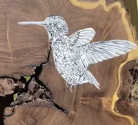 The calm and protected environment of Boardwalk’s garden filled with natural recourses makes for an ideal nesting area for hummingbirds and they churn out nests in our tropical oasis like clockwork. Tip: if you book our Sustainability Tour at the Front Desk we’ll show you where new bird nests have currently formed. Armando has a fondness for hummingbirds and with their abundant presence in Boardwalk’s garden it was only logical that he picked this mesmerizing bird as his focal topic for the artwork he was about to create.