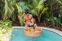 - romantic amenities like an outdoor shower, private plunge pool and floating breakfast