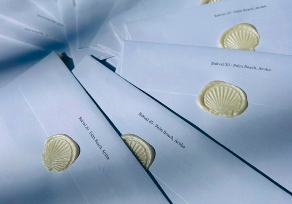 One of the most heartwarming rituals; we invited guests to write a love letter to their future selves. Basking in Aruba’s tranquil rhythm, they penned notes to be opened when life felt busy again. Sealed with a wax shell stamp and mailed home, these letters became soulful surprises waiting on the doorstep.