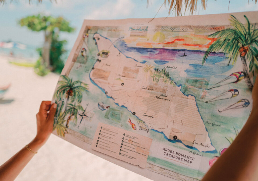 We curated island treasure maps filled with our favorite slow finds; hidden beaches, dreamy viewpoints, and local gems designed to guide guests into gentle, off-the-beaten-path adventures. Each map was a love letter to Aruba’s softer side.
