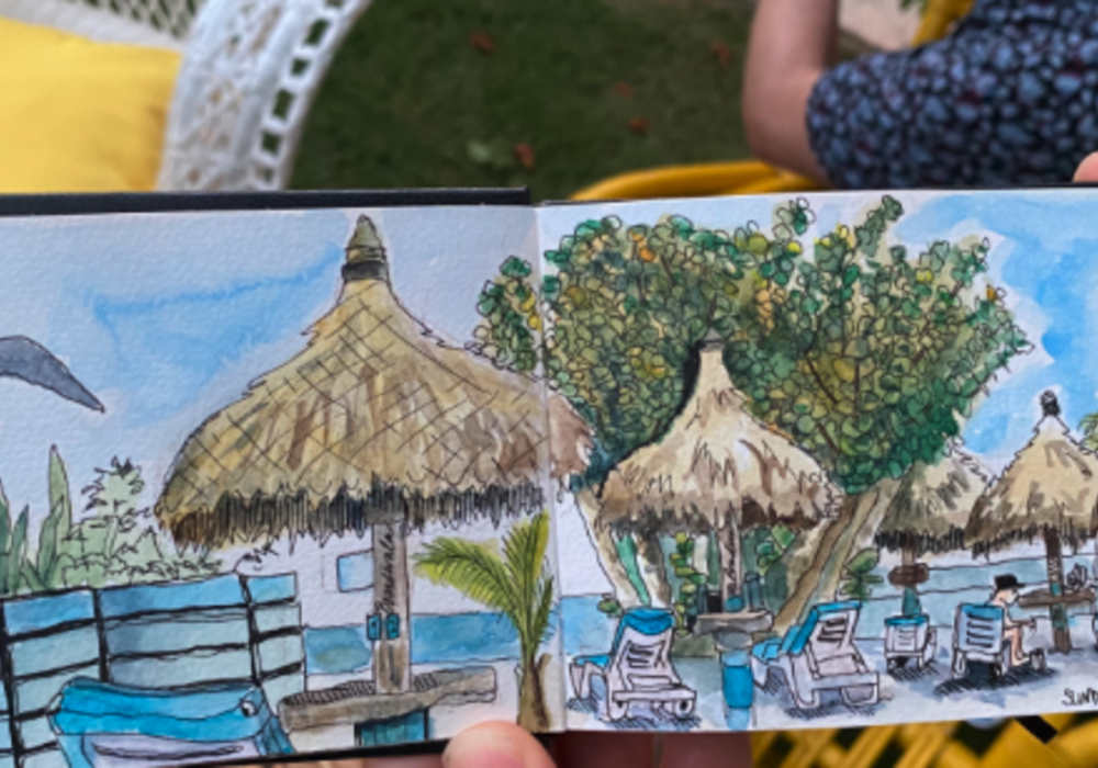 Every guest was welcomed with a handpicked journal waiting on their bed; a space to write, scribble, sketch, or dream. It became a beautiful prompt for personal reflection, with many sharing their incredible pages and artwork with us. Calming island playlists set the mood, creating space for guests to reconnect with themselves in their own creative way.
