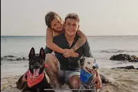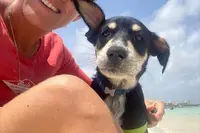 Enter the protagonist of this story, Luuk Loo. Luuk, a blond-haired, handsome young dad on a leisurely stroll with his newborn daughter strapped to his chest, was taking in the views of Aruba’s remote shoreline at the outskirts of the North Coast in December 2022 when he saw a dog pacing and looking out of sorts. With his trained eye and experience gained over the years in his volunteer work for animal rescue organization Sgt. Pepper’s Friends he knew the dog was in distress and most likely belonged to someone who missed him. After much effort in pursuing the jumpy and anxious dog, he was finally able to capture Max and soon Kimberly received another phone call in Hawaii to learn of her beloved pet’s safe return home. Needless to say the name of Max’s rescuer, Luuk Loo, was forever engraved in her memory.