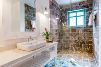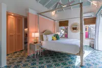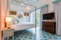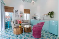 This Aruba-inspired ground-floor casita is a fully air-conditioned one-space suite with a kitchenette, a private patio with BBQ and hammock, a spectacular hand-painted mural, luxurious bathroom with both an indoor and exclusive outdoor shower.