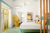 The Coco Casita is your colorful, cozy home base in Aruba. A one-space studio suite with a fresh beach home feel, designed for two adults who want everything within arm's reach: king bed, kitchenette, private patio, without anything in the way.