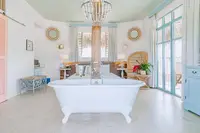- A freestanding tub and a breeze drifting in