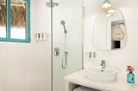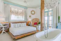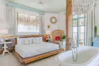 The Palapa Lodge is truly one of a kind. It's the only casita at Boardwalk beneath an authentic Aruban thatched roof, with a 360-degree wraparound terrace, a freestanding bathtub placed at the heart of the room, and views over the Saliña Preserve. There is genuinely nothing else like it on the property, or in Aruba.