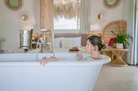 A one-of-a-kind stay under an authentic Aruban thatched roof, with a bathtub that takes center stage.