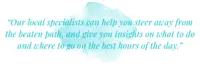 Especially during the Holidays in Aruba when the island, our beaches, restaurants, main attractions and most popular sites receive higher visitor numbers than during any other season, we encourage you to come visit our Front Desk team before you make plans for the day. Our local specialists can help you steer away from the beaten path, and give you insights on what to do and where to go on the best hours of the day.