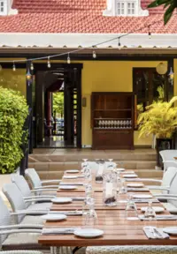 Set in beautifully lit gardens on the premises of a historic local mansion that once served as a hospital, this upscale restaurant serves international fare in an elegant setting.