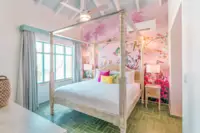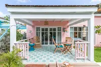 This Aruba-inspired ground-floor casita is a fully air-conditioned one-space suite with a kitchenette, a private patio with BBQ and hammock, a spectacular hand-painted mural, luxurious bathroom with both an indoor and exclusive outdoor shower.